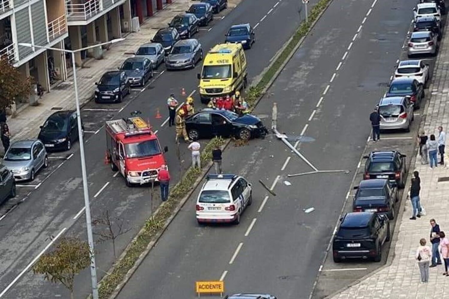 Na sequência do despiste, um dos poste elétricos foi derrubado e ficou caído sobre a via. Foi chamado o piquete de intervenção da rede elétrica.