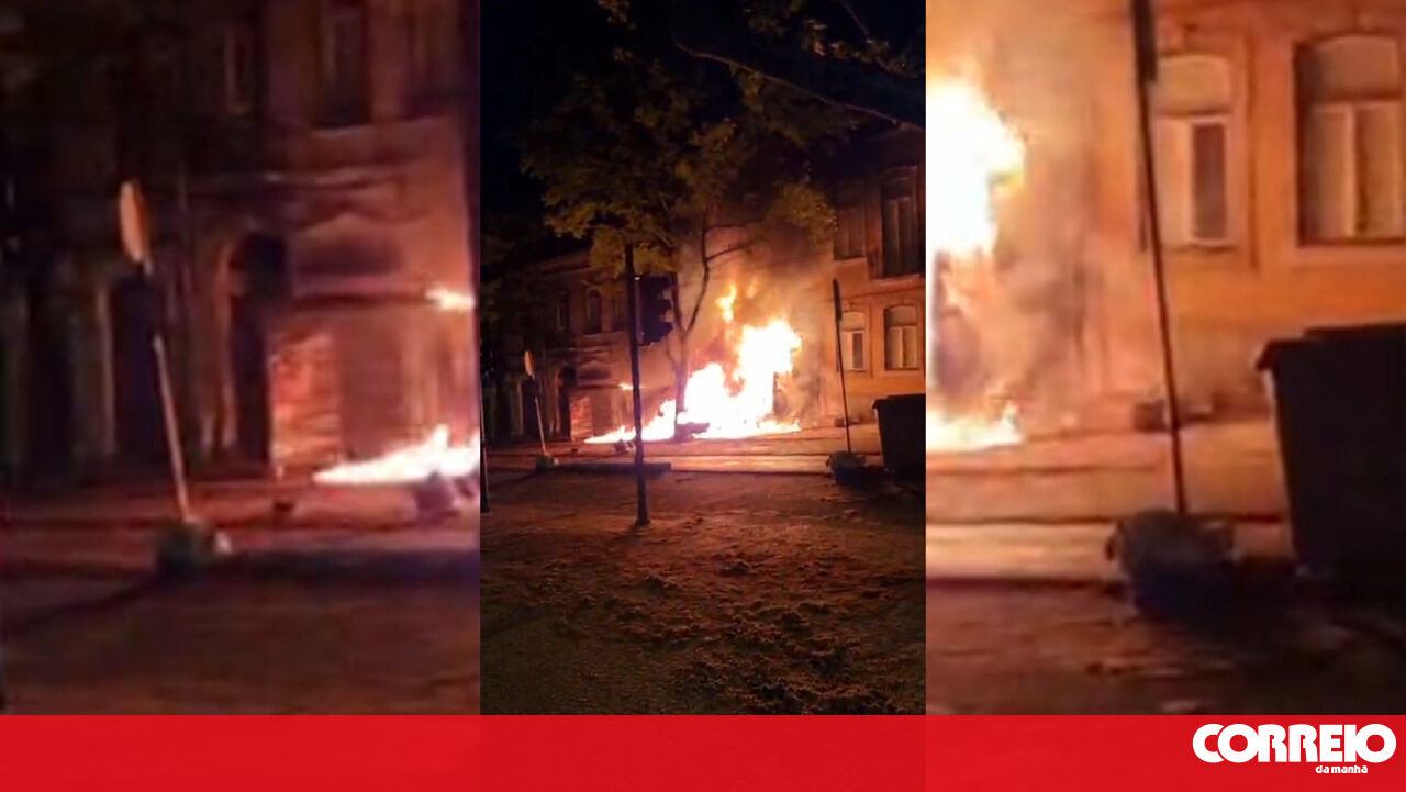 Imagens mostram viatura em chamas após despiste contra prédio em Coimbra. Duas pessoas morreram