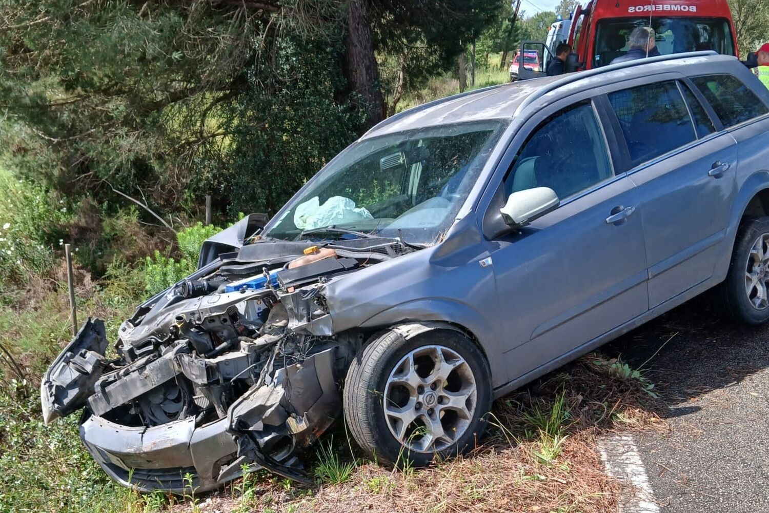 A viatura entrou em despiste e embateu contra um pinheiro.