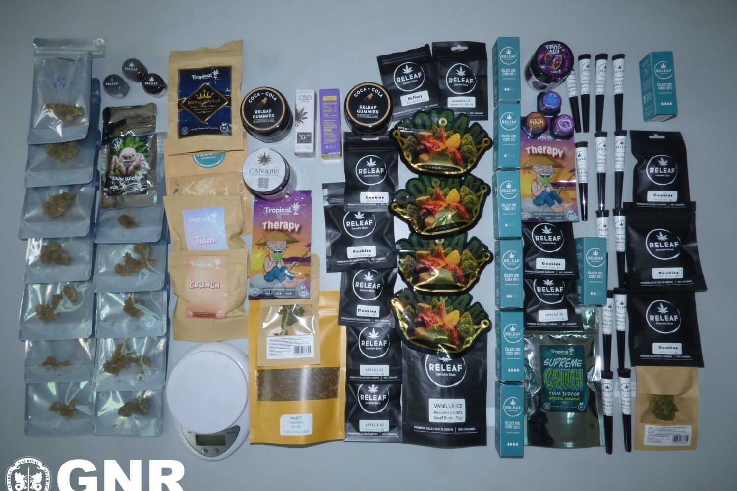 O Comando Territorial da GNR de Coimbra anunciou esta quarta-feira a detenção de uma mulher, de 32 anos, em Soure, a quem foram apreendidas 24 doses de canábis em resina, 59 em folha, 10 frascos de óleo de haxixe, 52 gomas de canábis, 13 'charros' e uma balança digital, após ter executado um mandado de busca domiciliária e duas não domiciliárias.