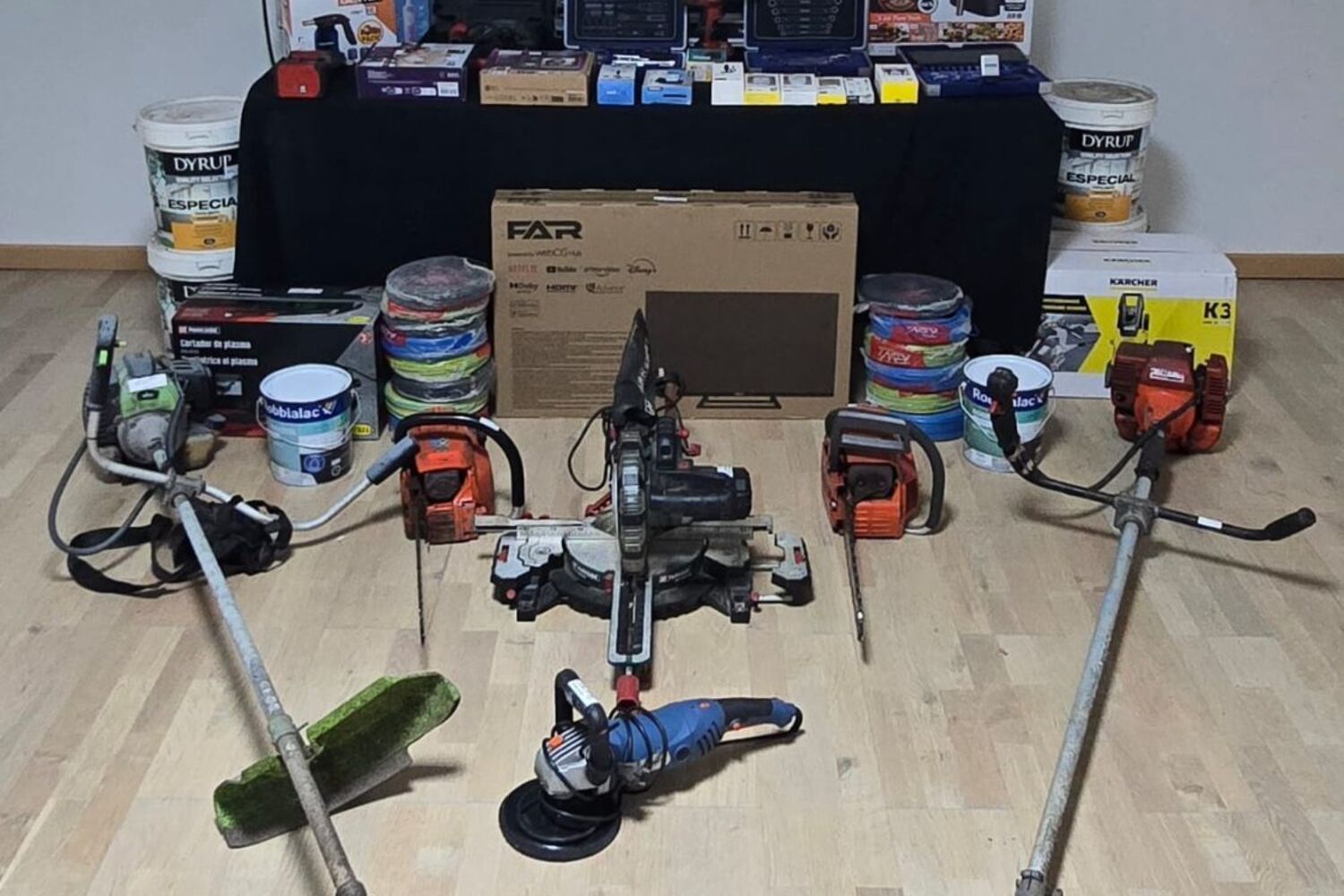As autoridades apreenderam, também, 1.292,89 euros em numerário, 30,4 doses de heroína, 20,95 doses de cocaína, 193,52 doses de haxixe, diversos equipamentos tecnológicos, equipamentos eletrodomésticos, ferramentas e equipamentos agrícolas e rês armas brancas.