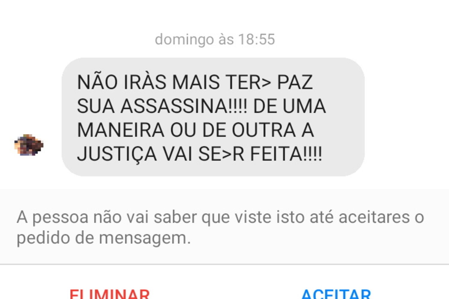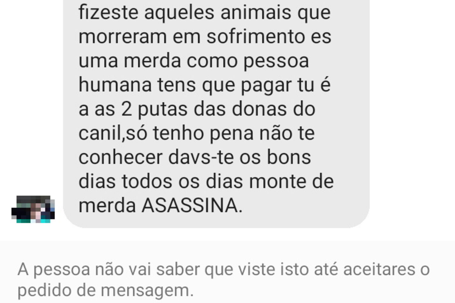 "Fui chamada de assassina, disseram que me partiam os dentes, que não podia sair à rua sem olhar para trás, que eu ia morrer, que me ia acontecer o mesmo que aos animais. (...) A última [ameaça] que recebi enfatizou o facto de não ser uma ameaça, disse que eu ia morrer carbonizada, só faltava dizer a data e a hora", desabafou, adiantando que depois desta última ameaça se dirigiu às autoridades competentes para apresentar queixa.