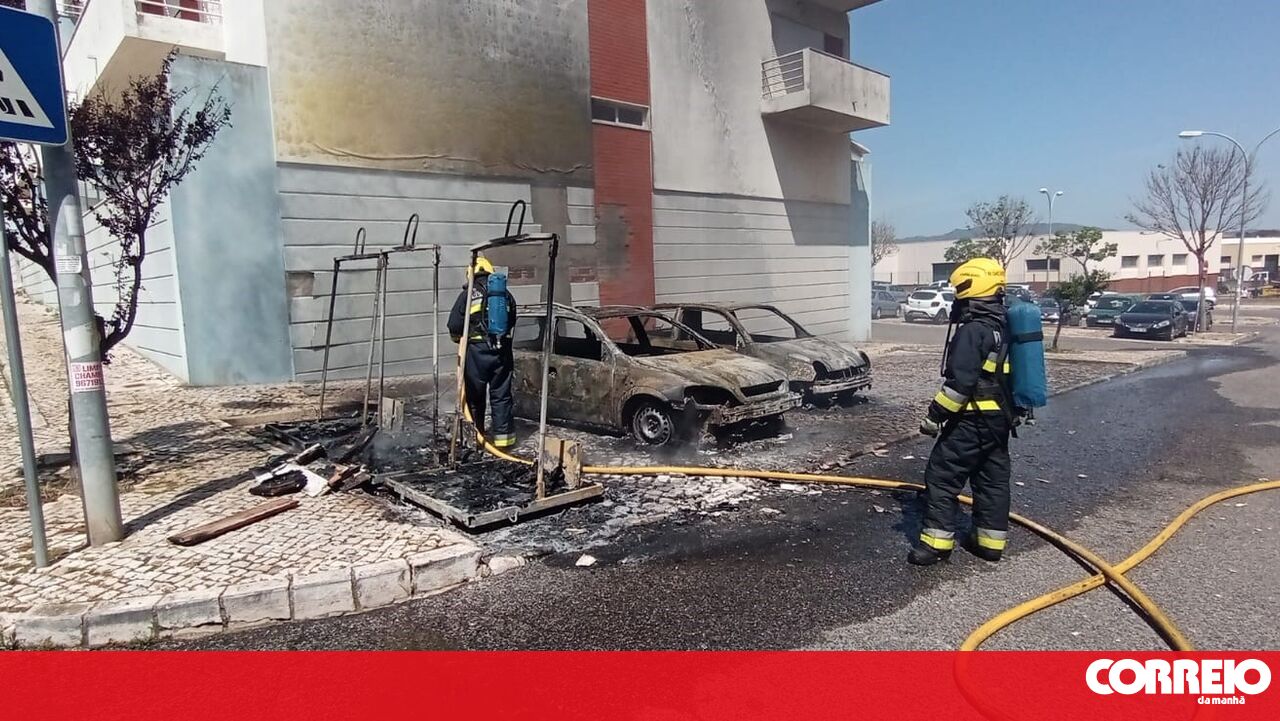 Um incêndio destruiu dois carros e um ecoponto, na manhã deste sábado, junto ao E.Leclerc no Bairro do Cabeço do Mouro, em São Domingos de Rana.
