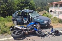 Duas pessoas ficaram feridas, esta tarde de quarta-feira, na sequência de uma aparatosa colisão entre uma mota e um carro, em Sátão.