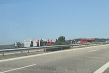 O acidente ocorreu às 08h45, ao quilómetro 87,9, no sentido norte/sul, da Autoestrada do Norte (A1), tendo sido enviados para o local 13 operacionais e cinco viaturas das corporações de bombeiros de Alcanena e Torres Novas, e ainda a GNR e a Brisa.