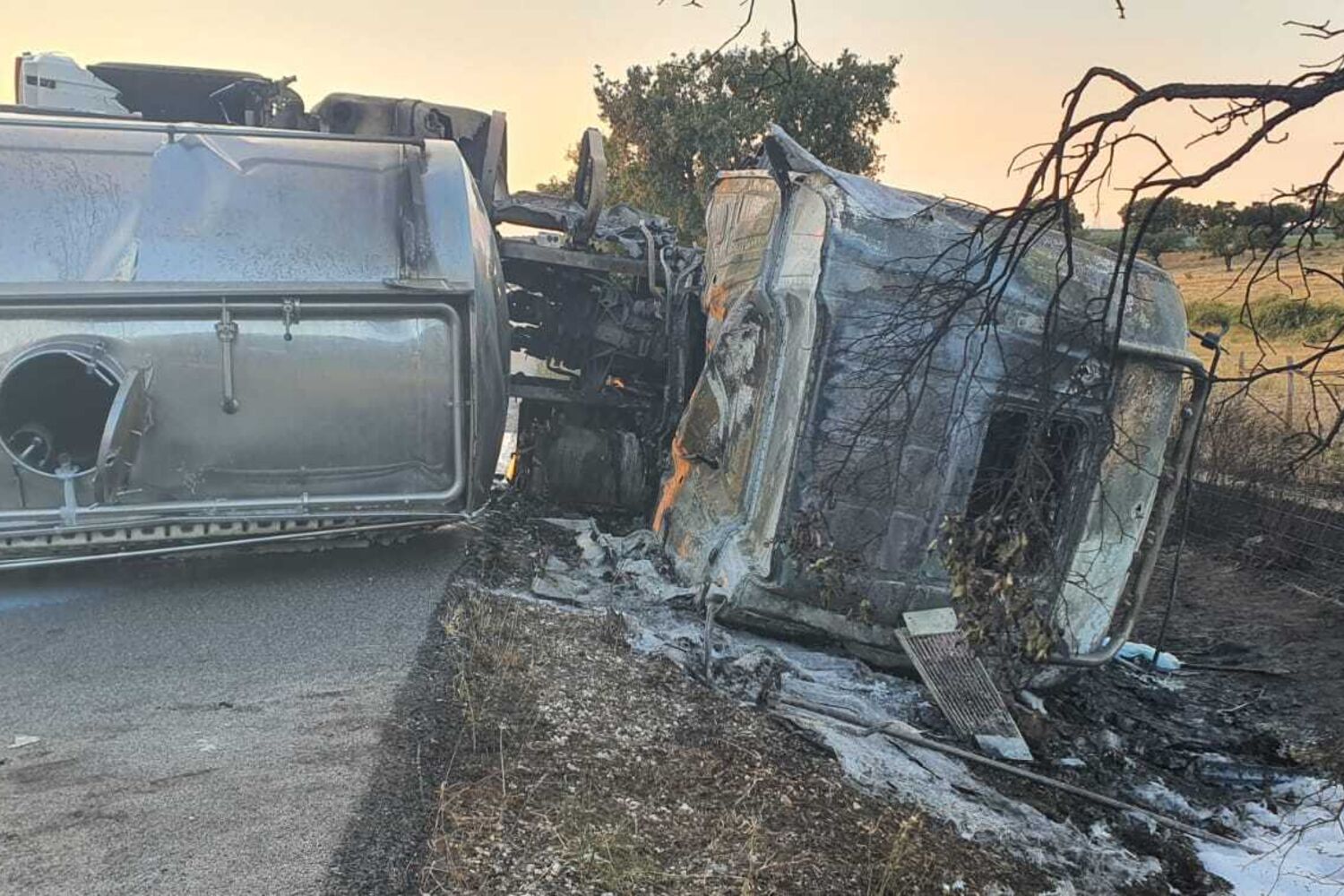 O condutor do veículo pesado morreu carbonizado depois do embate, uma vez que ficou encarcerado e a viatura começou a arder após a colisão. A outra vítima mortal é o condutor do ligeiro.