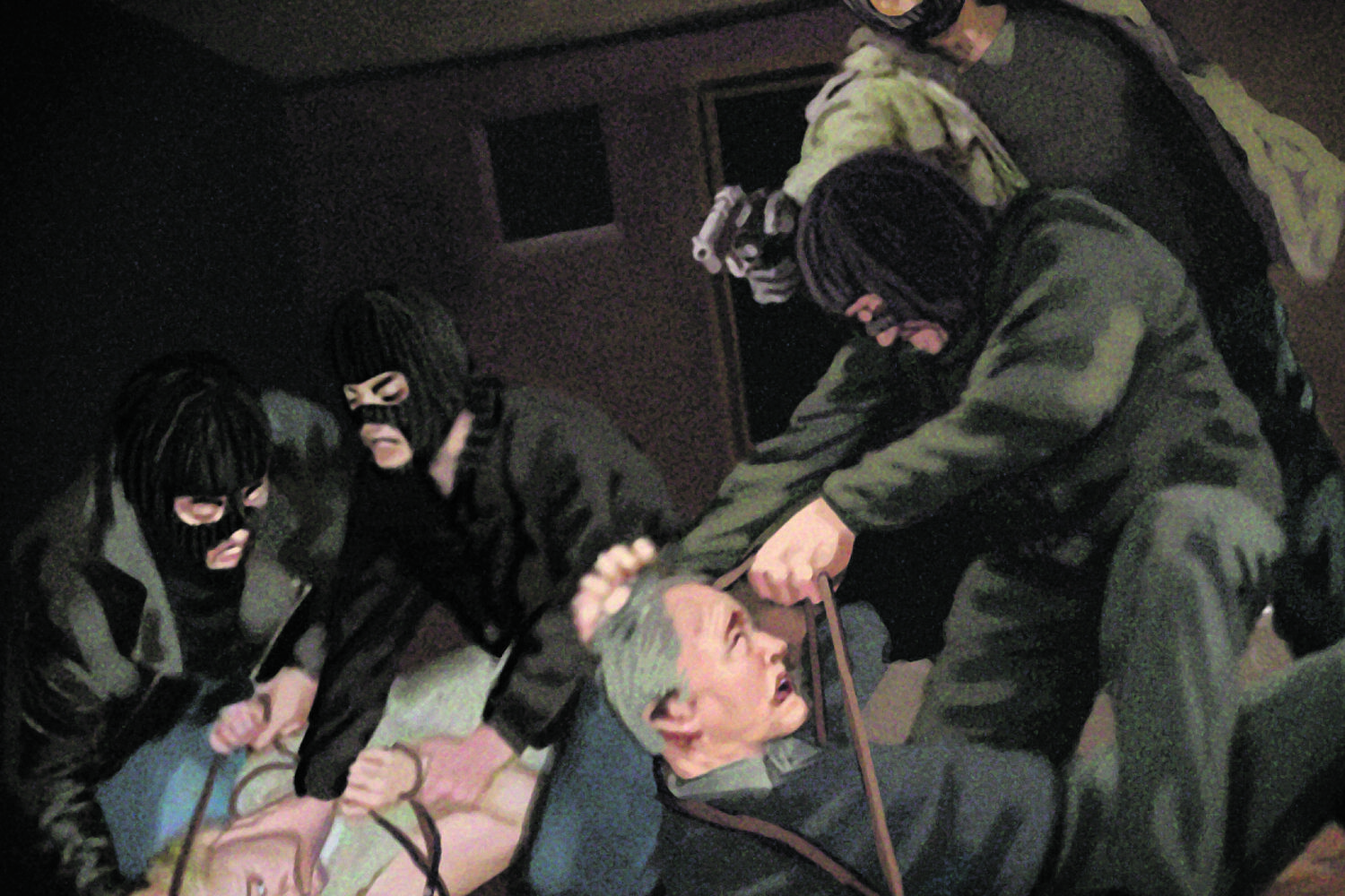 Durante praticamente duas horas, um casal - o homem com 60 anos e a mulher com 67 - esteve sequestrado em casa, às portas de Braga, por um dupla de encapuzados, armados. A mulher foi agredida com violência e chegou a ser arrastada pela casa. A dupla fugiu com pouco mais de 100 euros e um fio de ouro. A vítima continuava esta quarta-feira internada, no Hospital de Braga, com um traumatismo craniano.