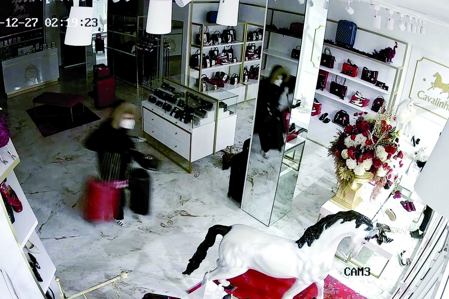 Dois ladrões encapuzados partiram a montra da loja da marca de malas de luxo Cavalinho, em Santa Maria da Feira, na madrugada desta segunda-feira, e precisaram de apenas um minuto para roubar duas dezenas de artigos e fugir da loja inaugurada há apenas uma semana. Para trás, deixaram 3 mil euros de prejuízo. O assalto ficou gravado na videovigilância. O alerta foi dado, pelas 02h30, por um vizinho. Quando a PSP da Feira chegou à Av. Comendador Sá Couto, já os assaltantes tinham escapado num carro Renault Clio branco.