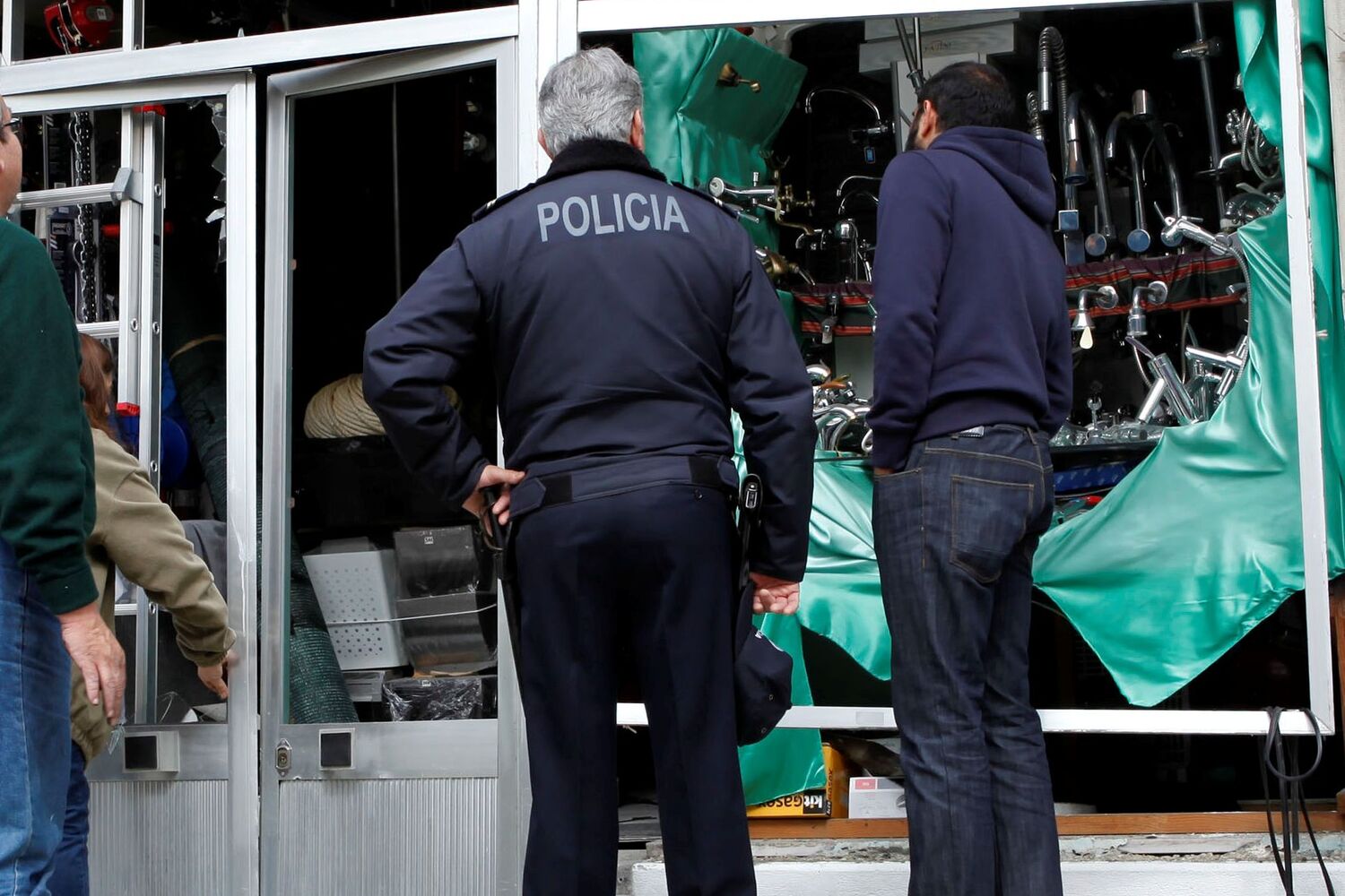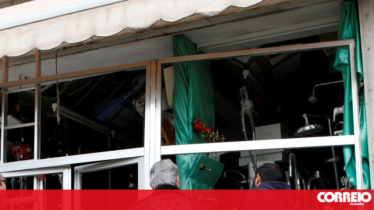 A fachada - incluindo a pesada grade de protecção - foi projectada para o passeio. Familiares do proprietário passaram toda a manhã a remover os destroços. A PJ esteve no local a fazer perícias.