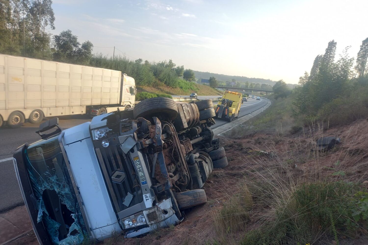 De acordo com a Brisa, o camião "passou do sentido Sul-Norte para o sentido Norte-Sul, ficando depois imobilizado na berma direita e talude".