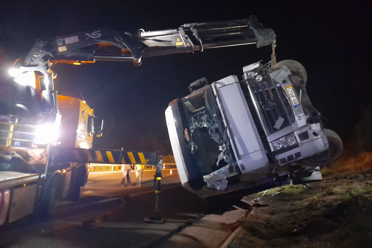 O camião que sofreu um despiste, esta tarde de segunda-feira, foi removido ao final da noite. Foi necessário retirar a carga, em artigos de plástico para o lar, do atrelado. A operação de transfega demorou várias horas.