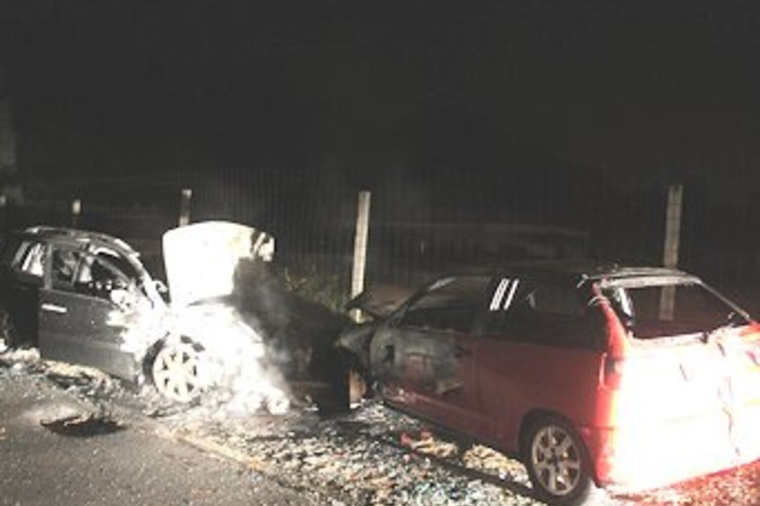 Quando os bombeiros chegaram, os dois automóveis já estavam tomados pelas chamas. Segundo apurou o CM, tudo começou quando o condutor do Renault Mégane se despistou e colidiu com um Seat Ibiza que estava estacionado junto à faixa contrária. Assim que embateu, o incêndio terá deflagrado de imediato.