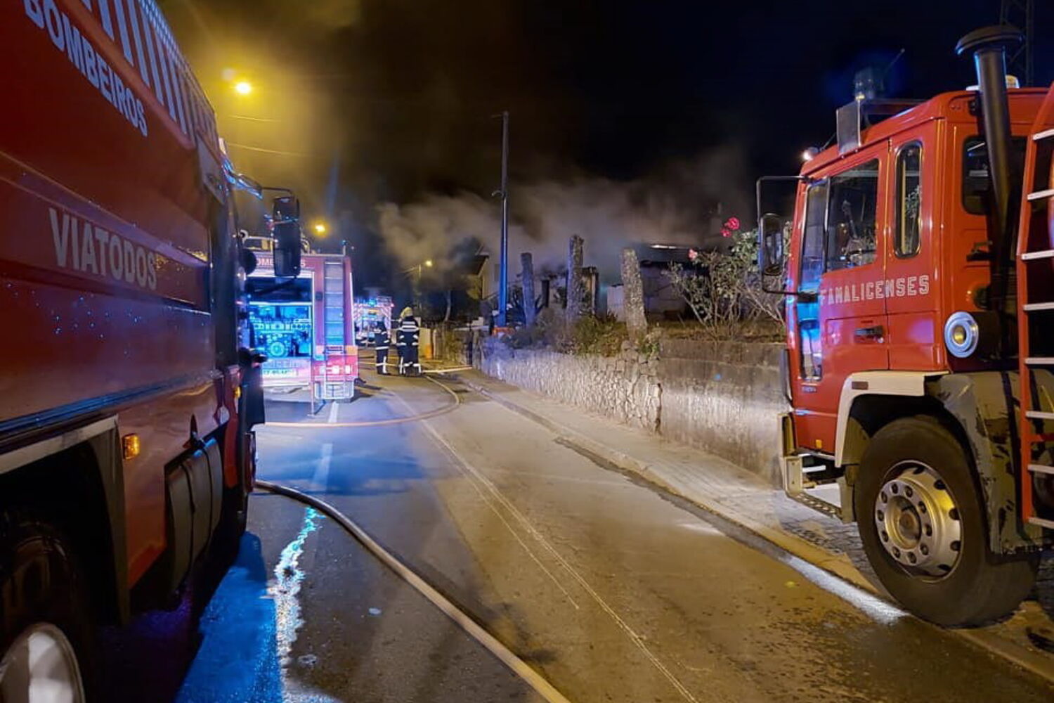 No combate ao fogo estiveram os bombeiros Voluntários de Viatodos e Famalicenses.