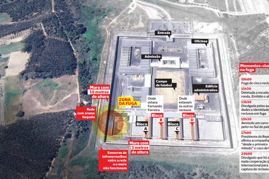 A fuga de Vale de Judeus, em Alcoentre, no concelho da Azambuja, envolveu cinco reclusos, dois deles portugueses, já recapturados (Fábio Loureiro e Fernando Ribeiro Ferreira).