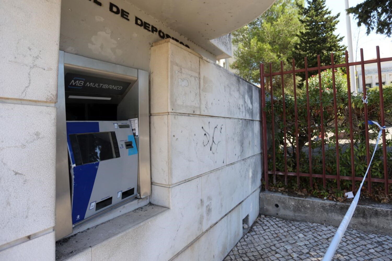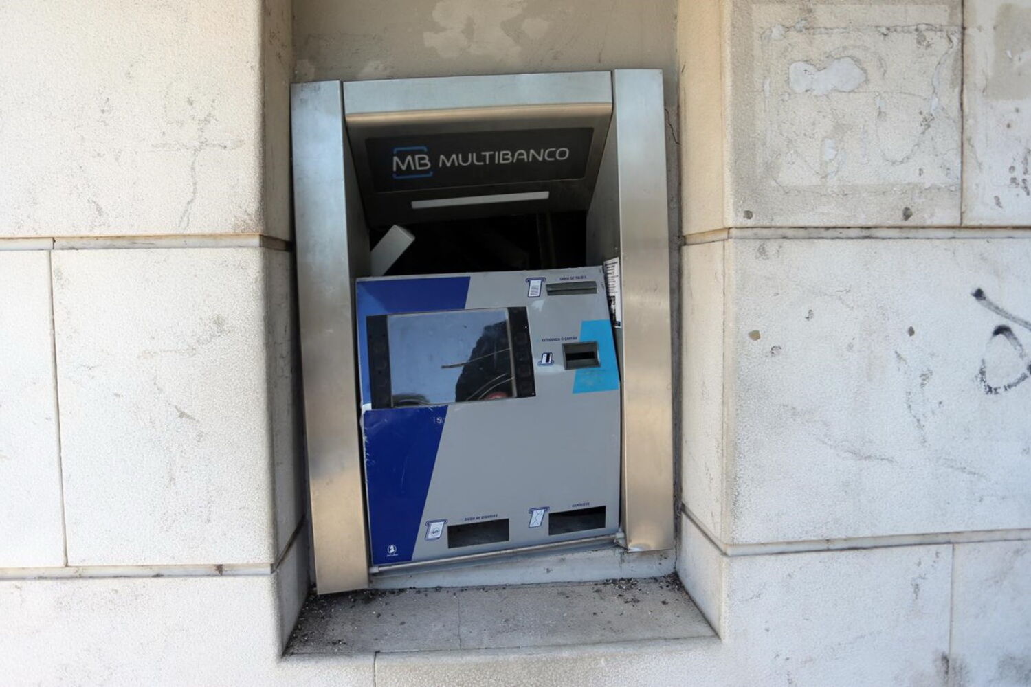 Quatro assaltantes encapuzados fizeram explodir à bomba uma caixa multibanco no Centro Comercial Japão, em Massamá, na madrugada da passada quarta-feira. O grupo conseguiu fugir.