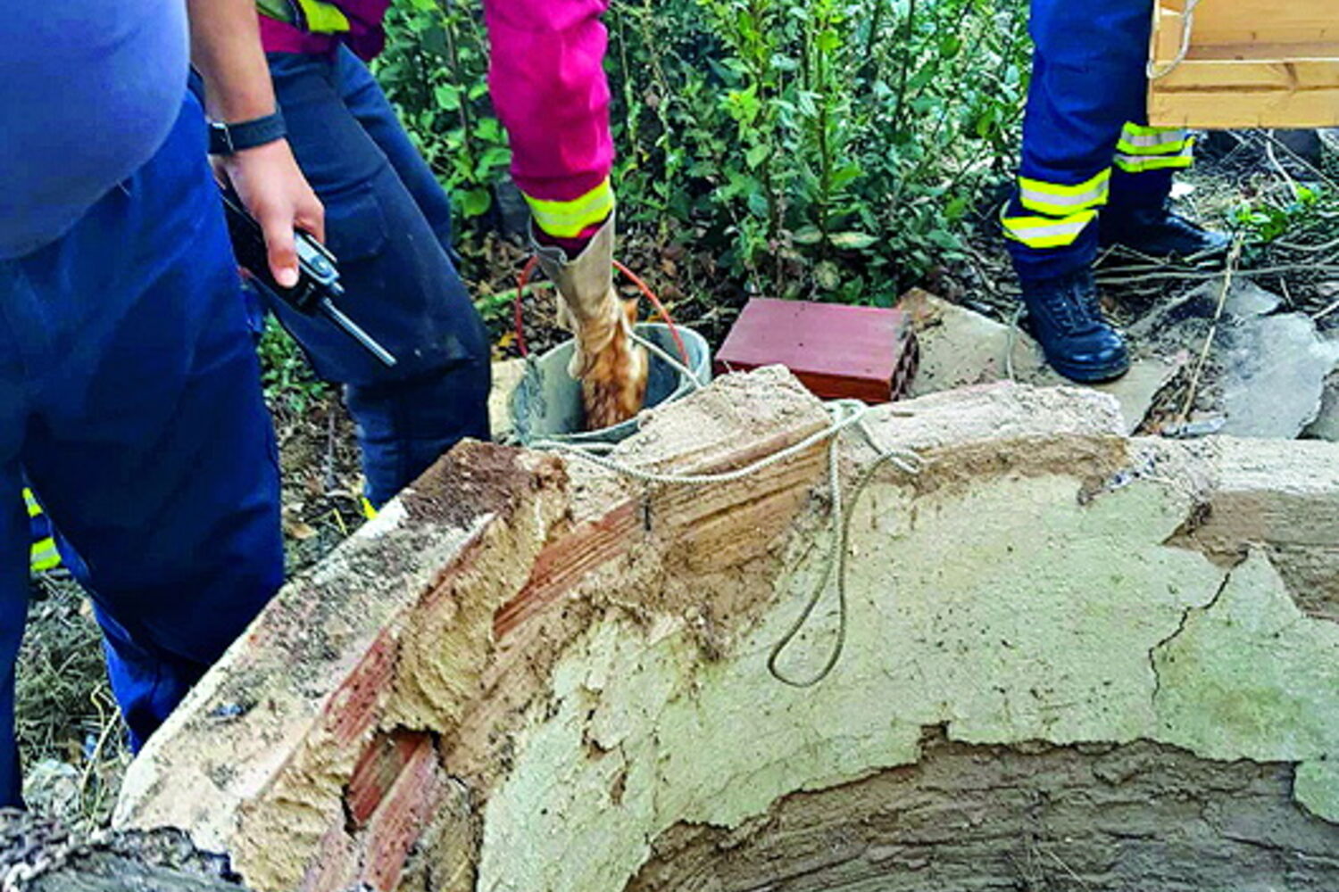 O alerta foi dado pelas 13h10. Cinco operacionais, com o apoio de uma viatura, conseguiram resgatar o animal que caíra a um poço com cerca de 20 metros de profundidade e que tinha cerca de quatro metros de água.