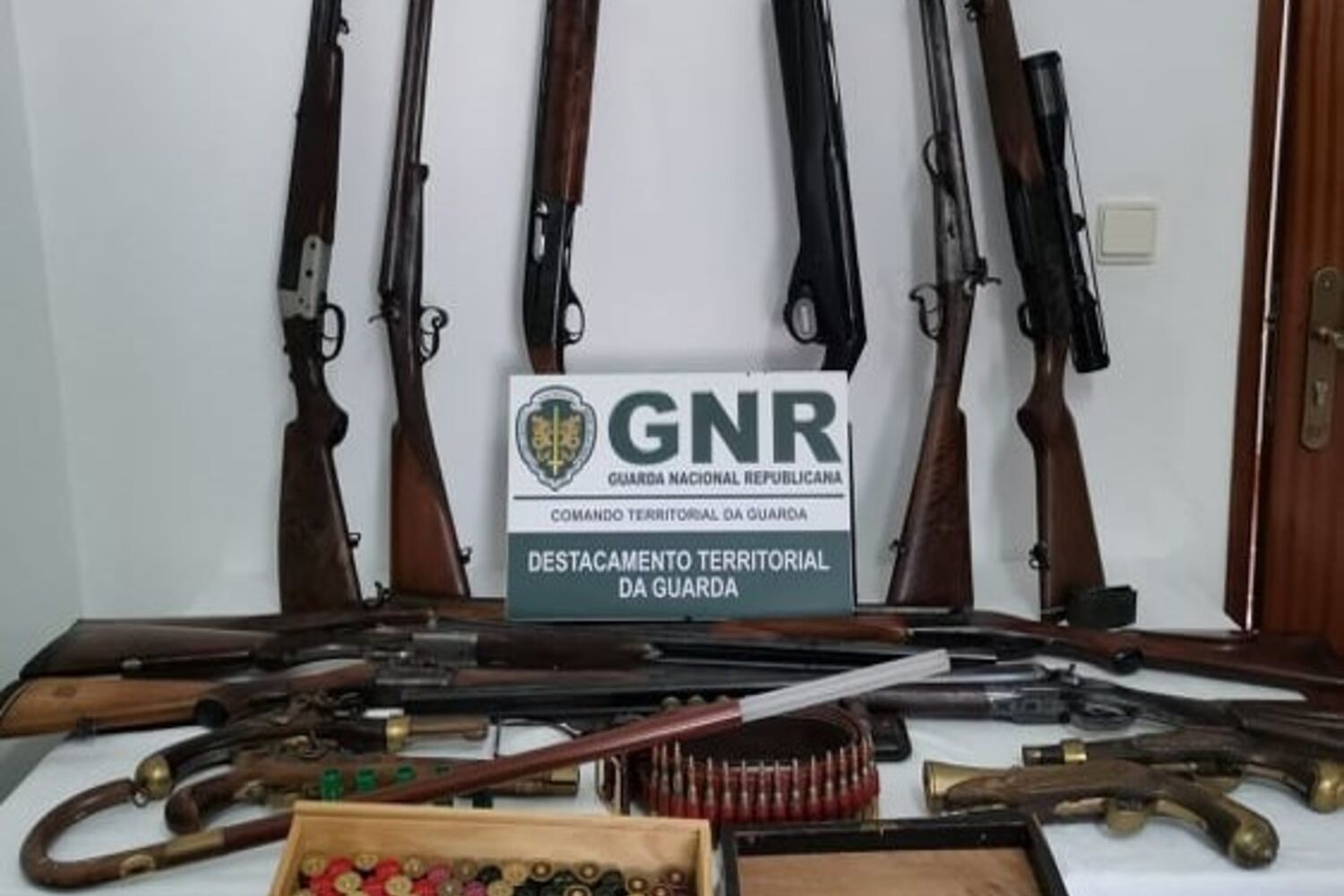 A GNR está neste momento a tentar identificar o proprietário. Quanto ao material, este foi entregue à PSP da Guarda, para peritagem e classificação das armas.