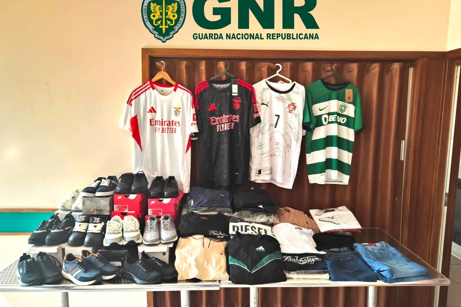 Foi no sábado, numa ação de fiscalização rodoviária, que as peças foram apreendidas. Os militares detetaram que no carro onde seguia o suspeito encontravam-se 55 peças de vestuário e 23 pares de calçado que ostentavam logótipos de marcas conceituadas. No decorrer da ação, apurou-se que os artigos eram contrafeitos, ou seja, que eram uma imitações de artigos à venda no mercado.