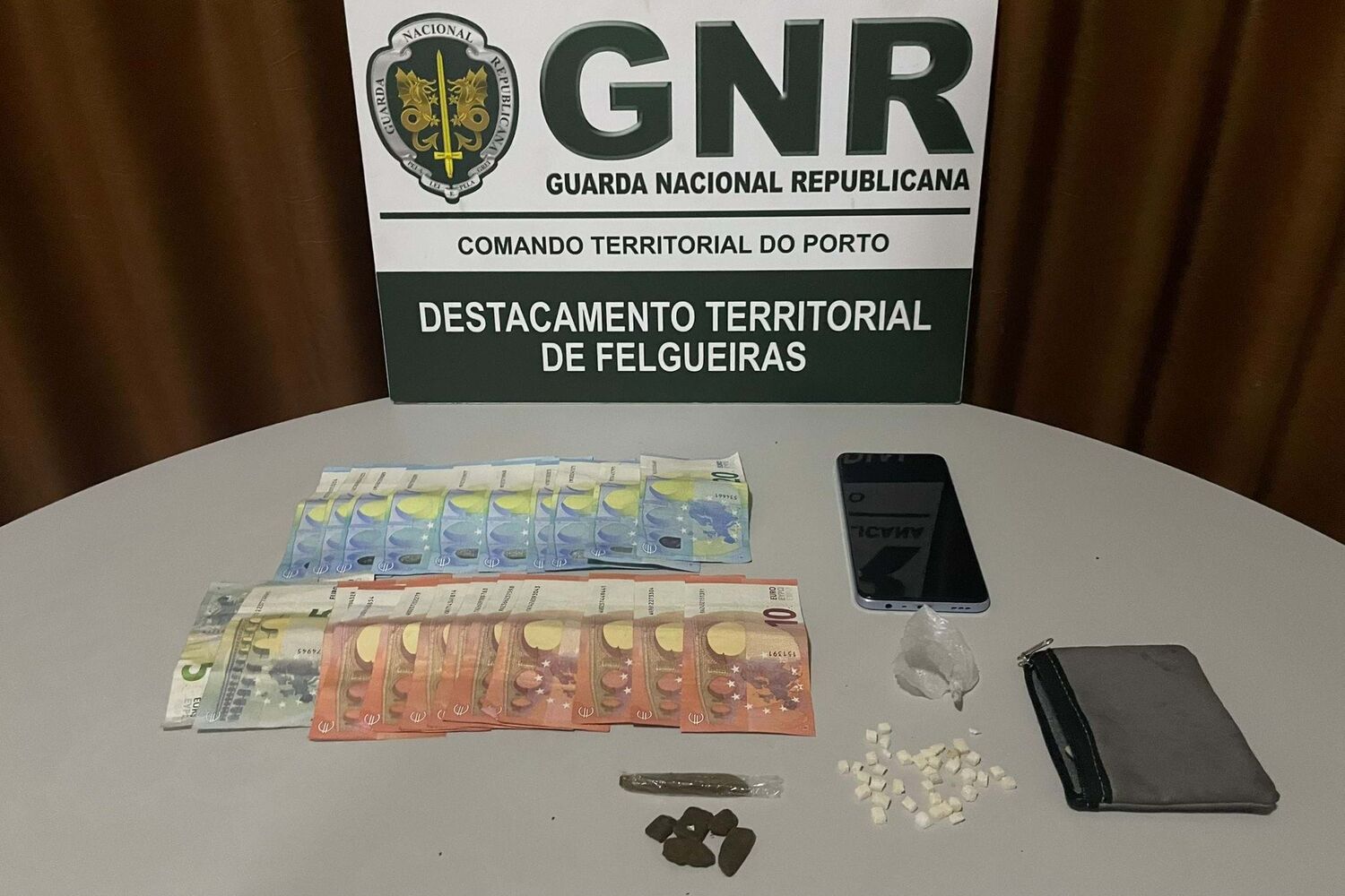 No decorrer da detenção, a GNR apreendeu 22 doses de cocaína, nove doses de haxixe, um telemóvel, uma carro e 315 euros em dinheiro.
