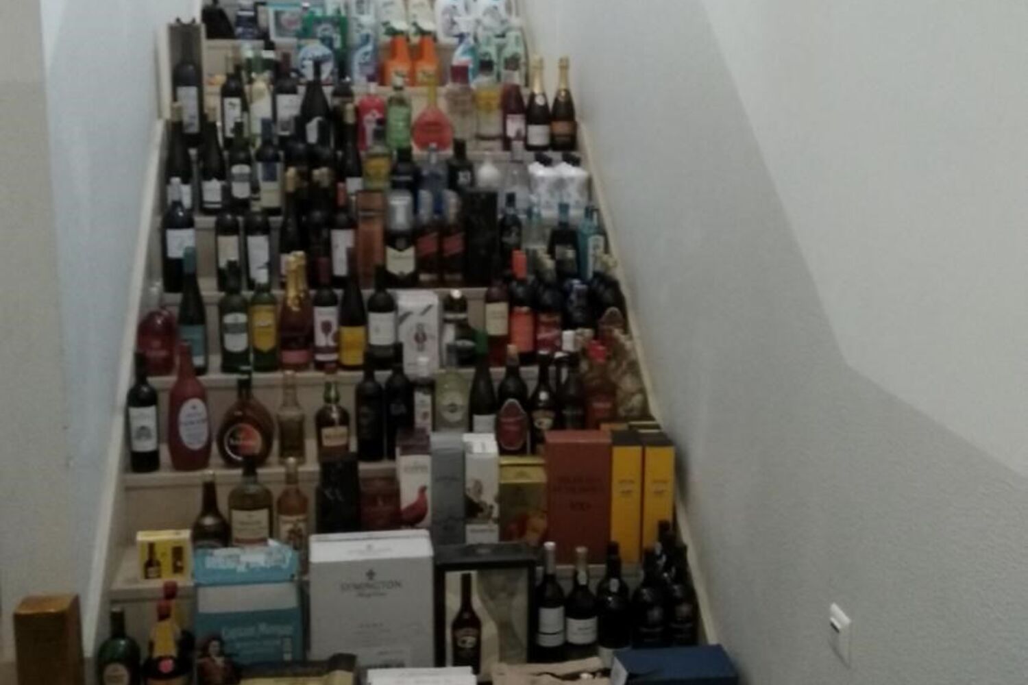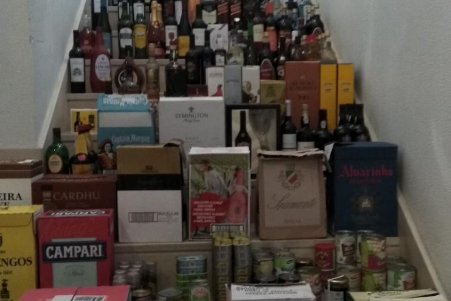 Na sequência de uma busca domiciliária à casa dos camionistas, que residem em Azambuja, os militares apreenderam cerca de 8.900 euros em produtos roubados, entre os quais mais de 400 garrafas de vinho e bebidas espirituosas de elevado valor, mais de 100 embalagens de detergentes e uma enorme quantidade de produtos alimentares de marca.