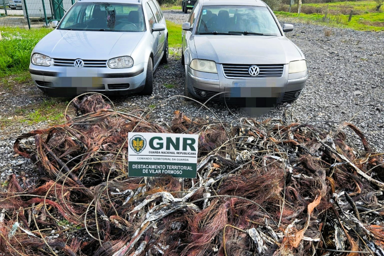 A intervenção culminou na apreensão de duas viaturas, 548 quilos de cobre, num valor presumível de 4.110 euros, e diversos objetos associados ao manuseamento e corte de cobre.