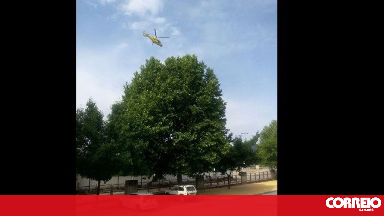 Um helicóptero do INEM aterrou ontem de emrgência num campo de futebol de Mirandela, depois de aparelho ter sido atingido pelo repuxo que está instalado no Rio Tua, no centro da cidade.