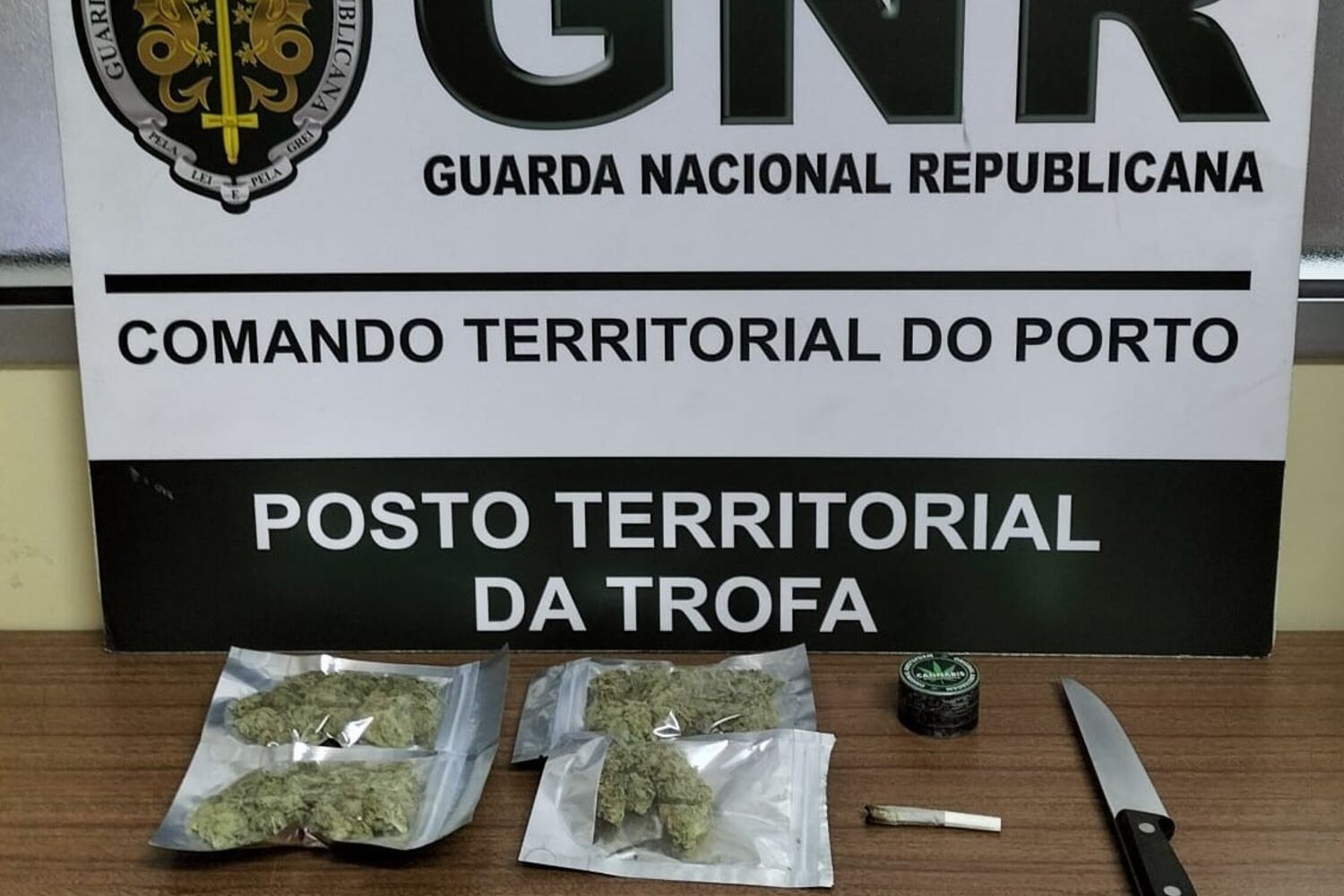 A detenção ocorreu na sequência de uma denúncia por violência doméstica. Durante a ação policial, além da faca, os militares apreenderam ainda cerca de 20 doses de haxixe - motivos que levaram à detenção em flagrante do agressor.