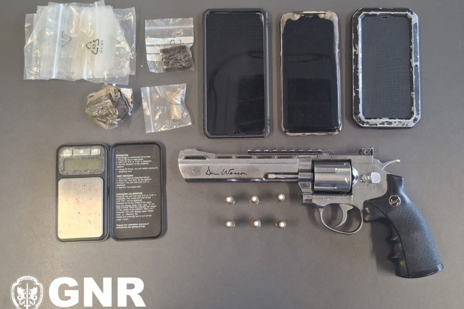 Suspeito, de 28 anos, foi apanhado numa fiscalização de trânsito. Além do revólver, tinha munições, haxixe e uma balança de precisão.