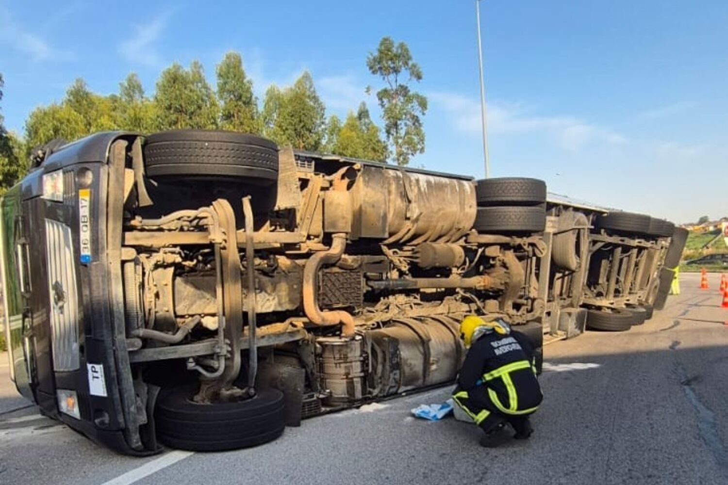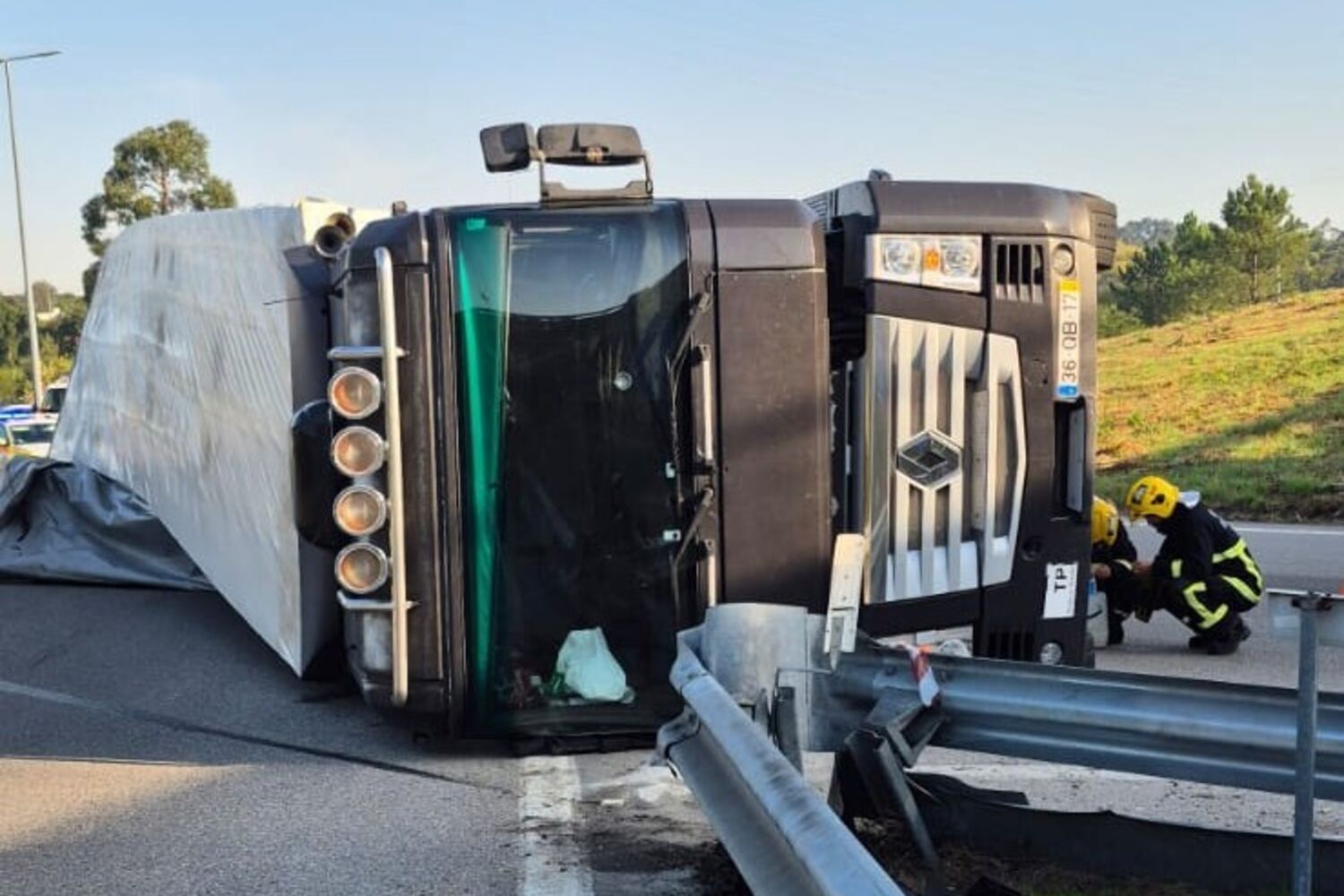 O alerta foi dado, cerca das 09h30, para os bombeiros de Aveiro Velhos, para um acidente rodoviário, na EN235, no acesso à A17, na zona de Oliveirinha. O camião ficou tombado na via. O acesso ficou, por isso, cortado ao trânsito.