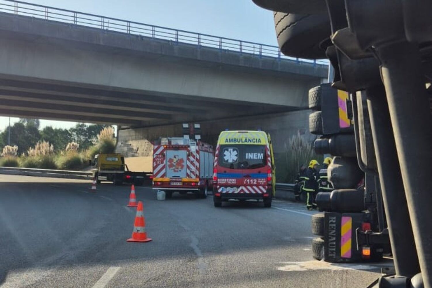 Camião ficou tombado na via, por isso, o acesso ficou cortado ao trânsito.