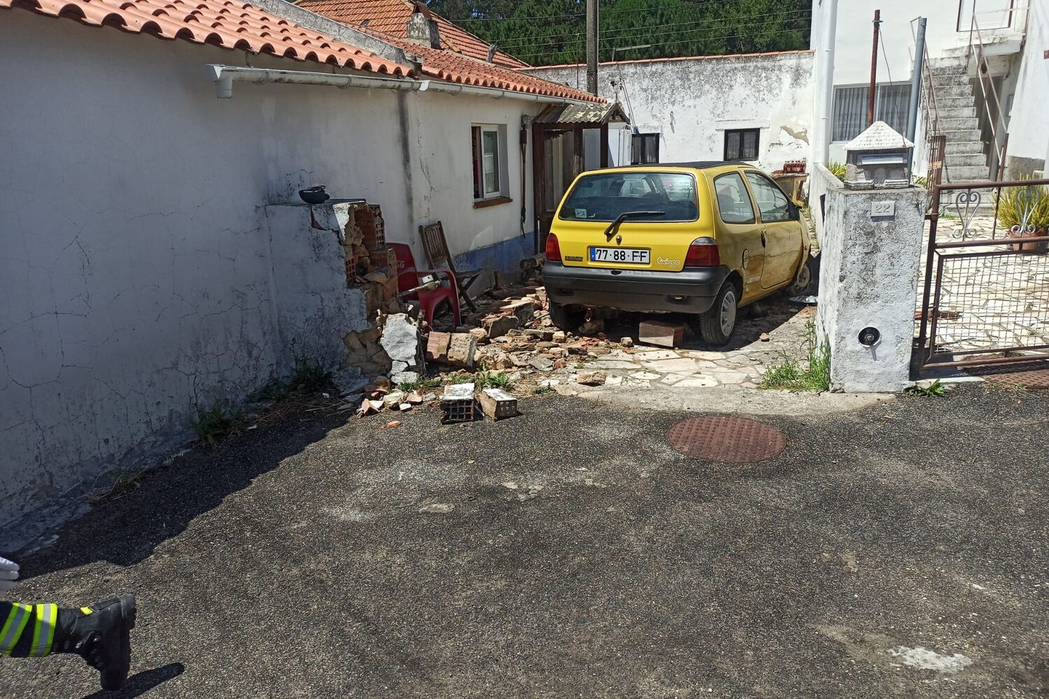Um homem perdeu o controlo da viatura que conduzia, ao início da tarde desta quinta-feira em Janas, Sintra, levando a viatura a derrubar parte do muro de uma habitação.