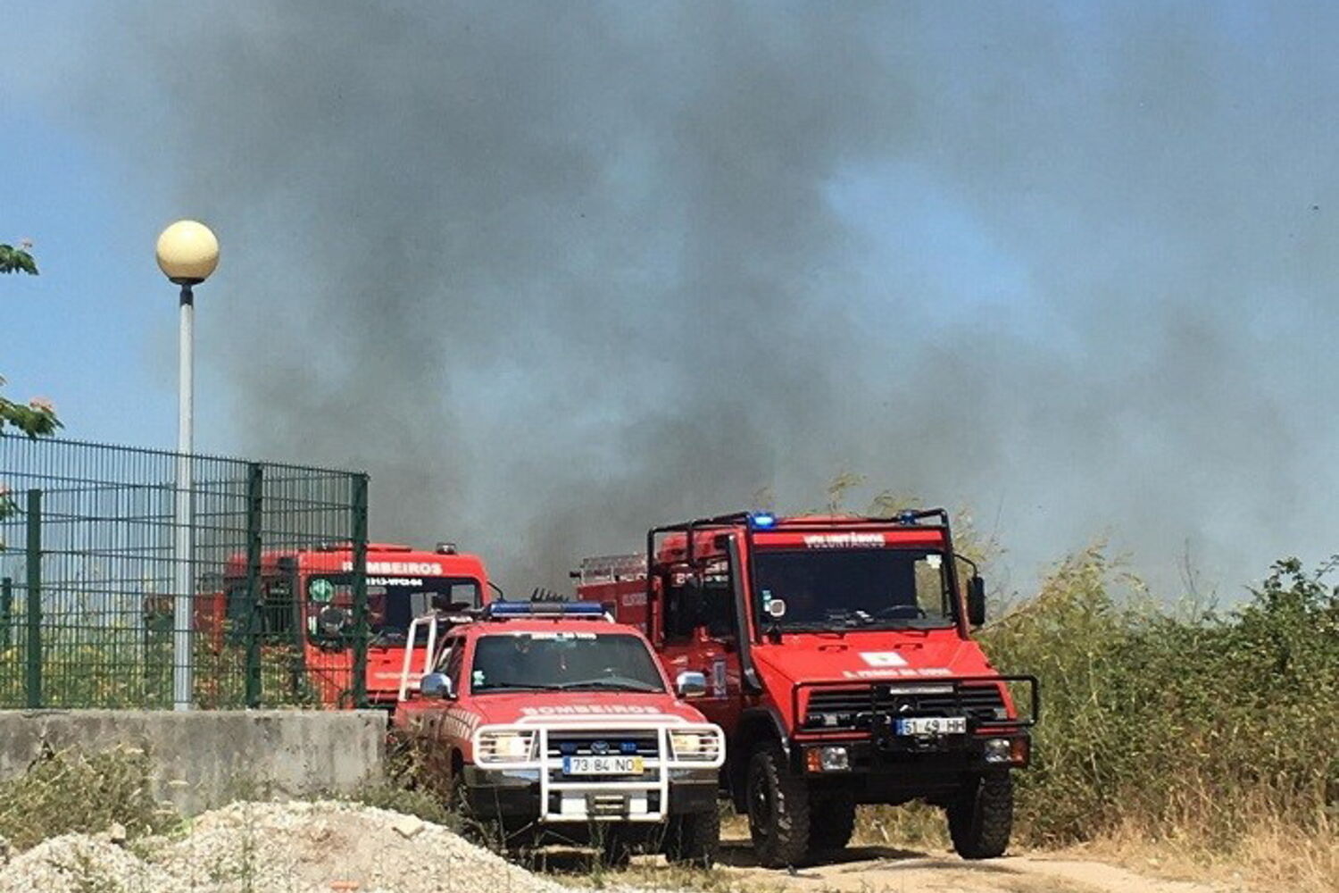 Fogo, que já se encontra em fase de rescaldo, não atingiu habitações, mas deflagrou perto de um cemitério.