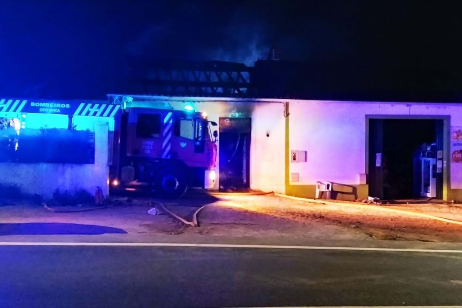 Um incêndio destruiu por completo um armazém de produtos alimentares na localidade de Baiona, freguesia de São Teotónio, concelho de Odemira.