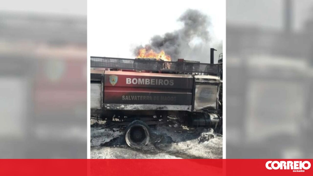 Viatura dos Bombeiros de Salvaterra de Magos foi consumida pelas chamas.