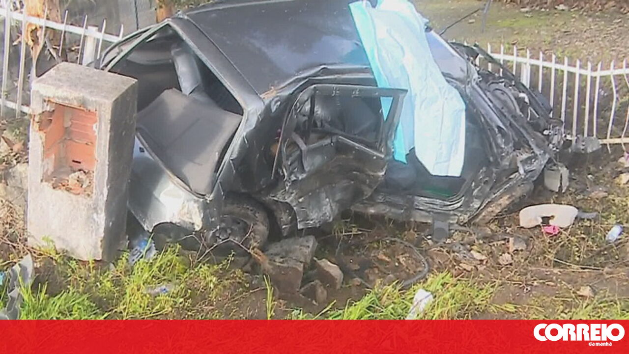 O acidente aconteceu pelas 7h30, quando o veículo se despistou na EN235 e foi embater num muro com gradeamento. O impacto deixou o caro destruído.