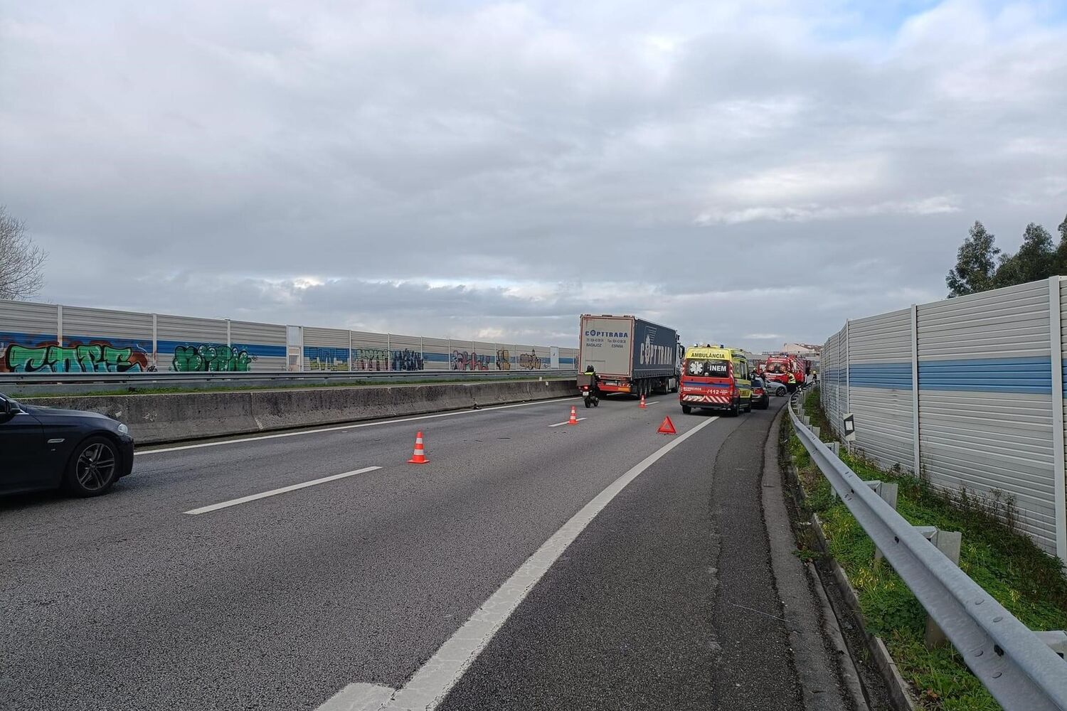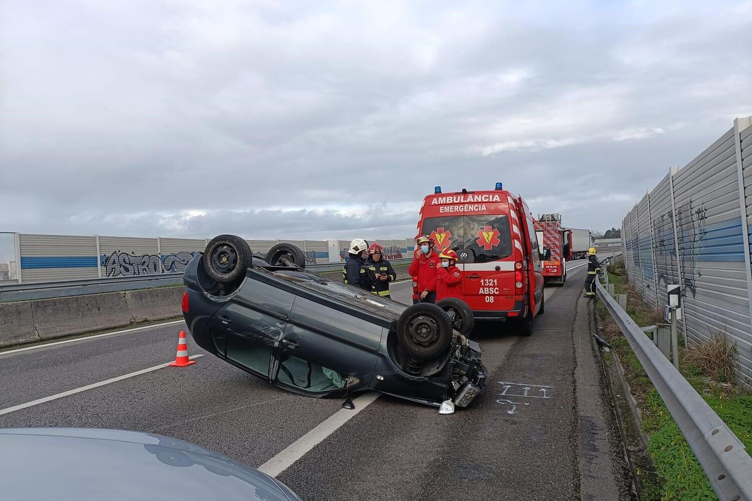 O alerta foi dado, cerca das 09h30, para os bombeiros da Aguda, para um acidente rodoviário, na A29, na zona de Arcozelo. As autoridades investigam a suspeita de um camião estar envolvido nas causas do acidente.