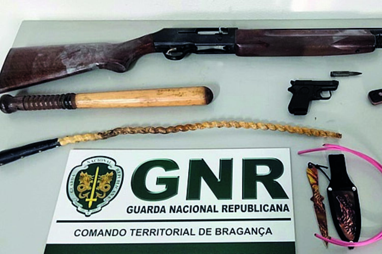 Durante a investigação, os militares apuraram que o suspeito exerceu violência psicológica sobre a companheira, que já se encontra protegida pelo regime de teleassistência. Na habitação do casal, a GNR encontrou e apreendeu ainda uma caçadeira e uma pistola, ambas sem licença, munições, duas armas brancas, dois bastões e uma dose de canábis.