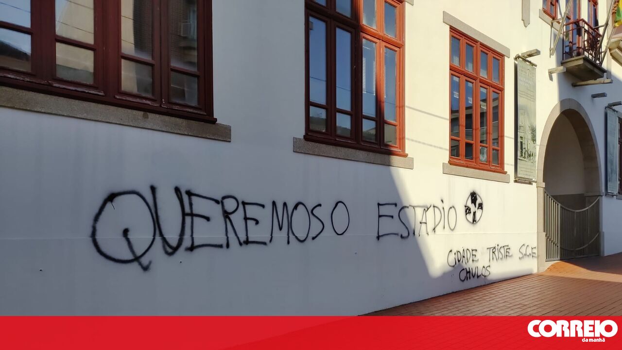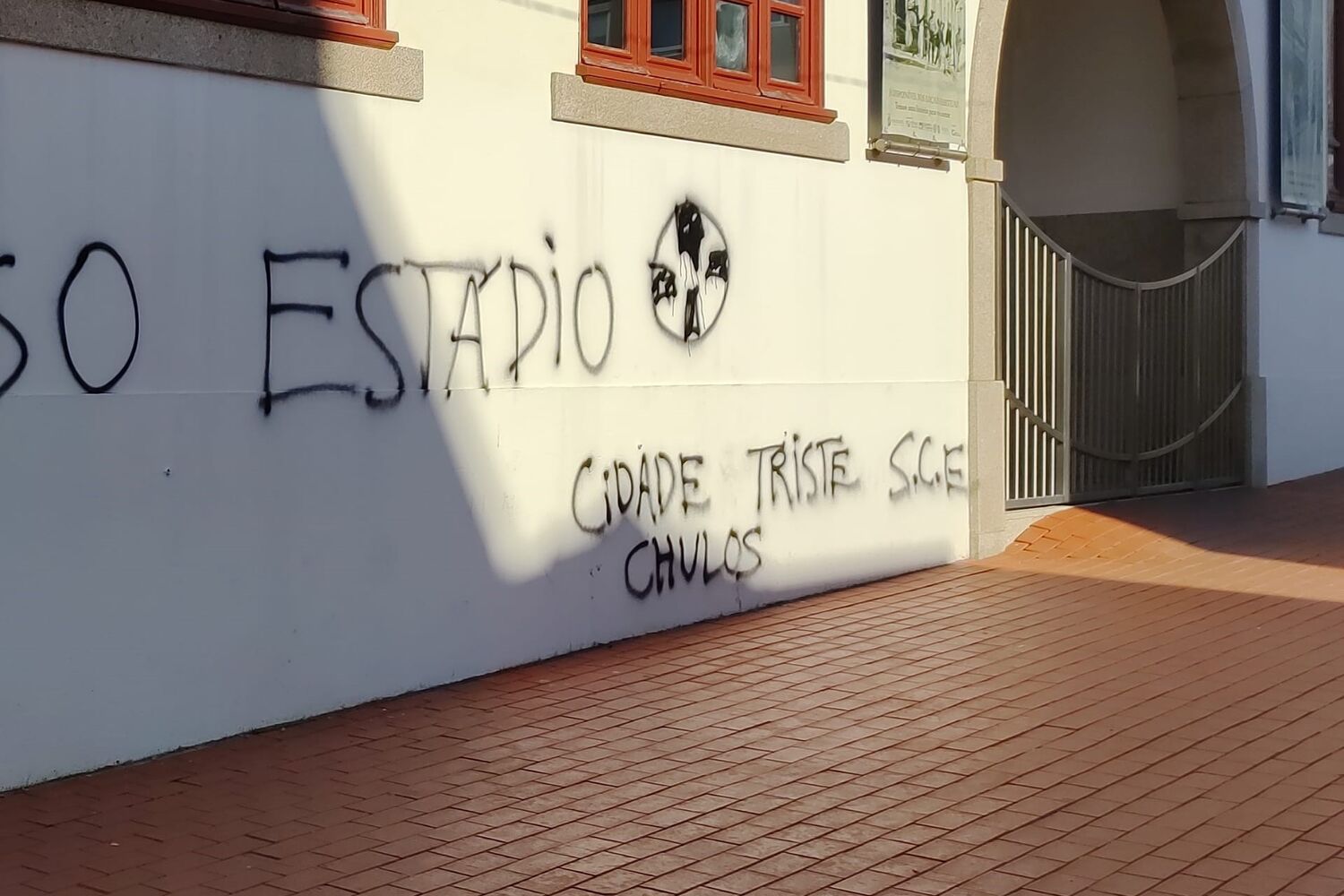 As paredes do edifício da Junta de Freguesia de Espinho foram vandalizadas com uma inscrição alusiva ao atraso da construção do estádio de futebol para o Sporting Clube Espinho.