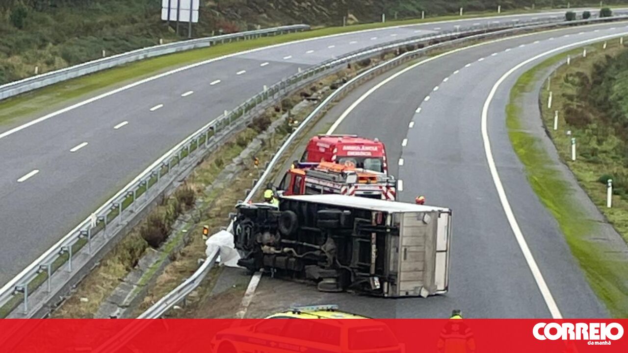 O motorista é um idoso de 79 anos. O pesado ficou capotado na via, no sentido de Esposende para Braga. O condutor teve que ser desencarcerado.