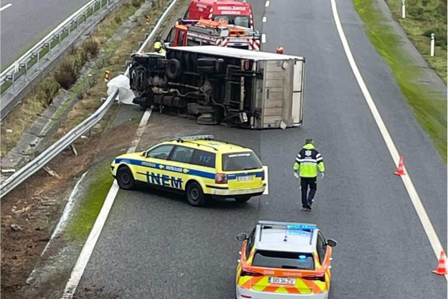 A circulação na autoestrada está a ser feita de forma condicionada, enquanto decorrem as manobras de socorro.