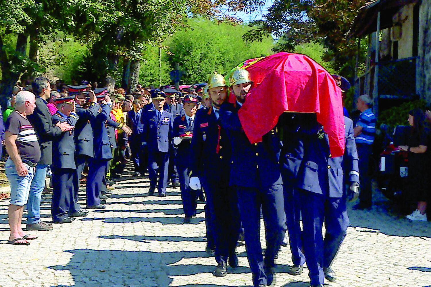A sirene dos bombeiros de Cête, em Paredes, tocou de forma incessante este domingo à saída do corpo de Noel Ferreira, o comandante daquela corporação, que perdeu a vida na quinta-feira, num acidente de helicóptero em Valongo. Logo atrás do caixão, seguia um quadro com uma fotografia do capitão da Força Aérea, de 36 anos, a sorrir com o filho ao colo. Um menino de apenas um ano, que um dia saberá através das histórias tudo aquilo que o pai foi e representou.