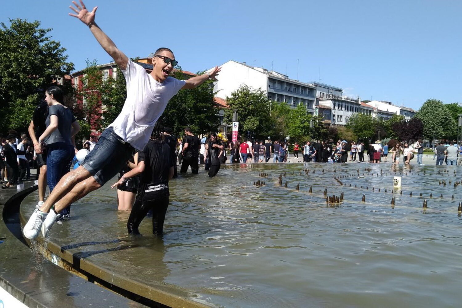 "Estou aqui muito emocionada e orgulhosa, a ver minha filha que terminou Direito", afirmou Lúcia Rodrigues. Mas, a par da emoção e do orgulho, os sentimentos percorriam muitas vezes os caminhos das preocupações quanto ao futuro. "O meu filho acabou Relações Internacionais. Preocupa a questão do emprego", disse Luís Rocha. No final ninguém quis falhar o tradicional mergulho no chafariz da avenida Central.