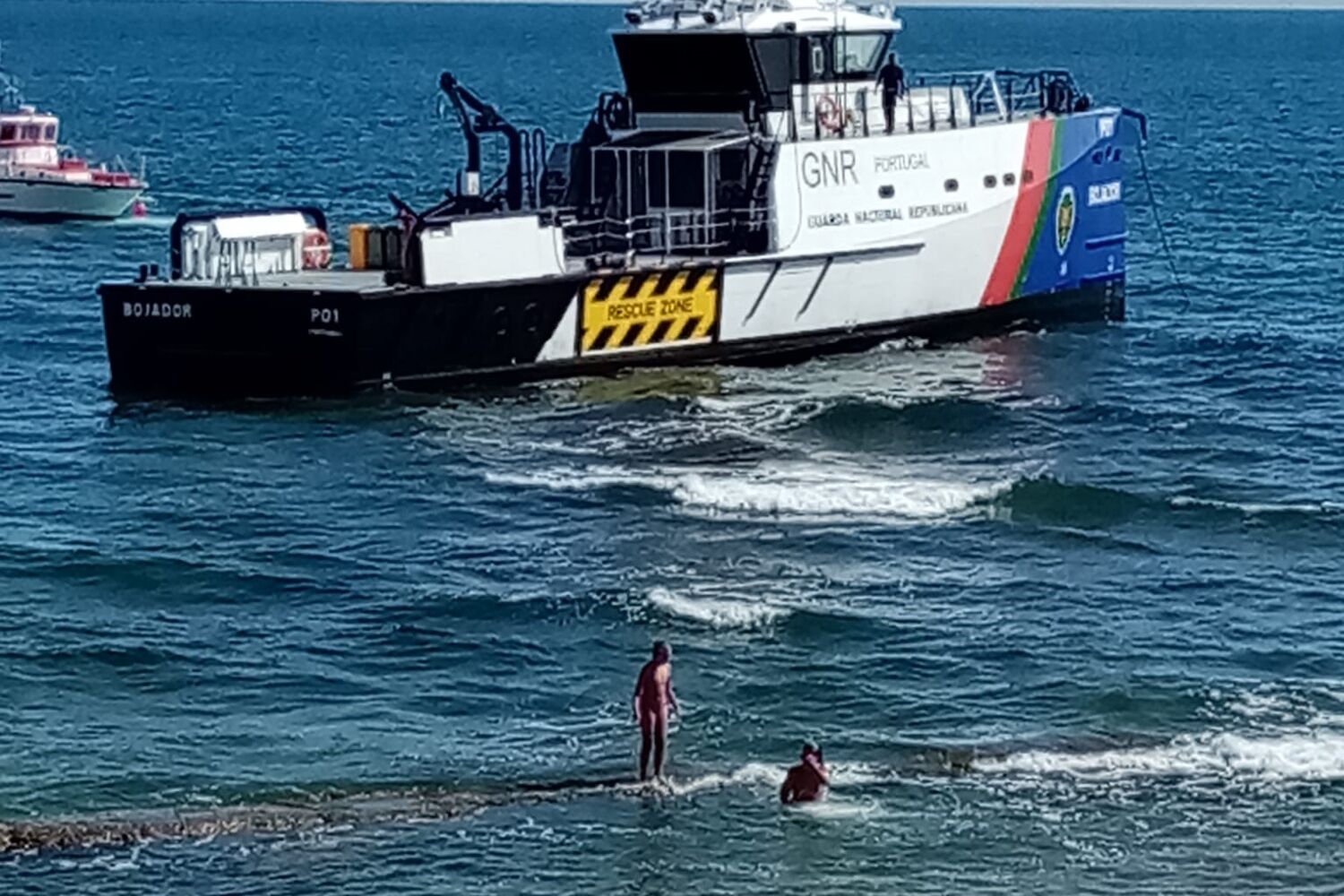 A megalancha da GNR ‘Bojador’, que na quarta-feira encalhou nas rochas entre as praias de Carcavelos e Parede, Cascais, estava a iniciar uma viagem de patrulha.
