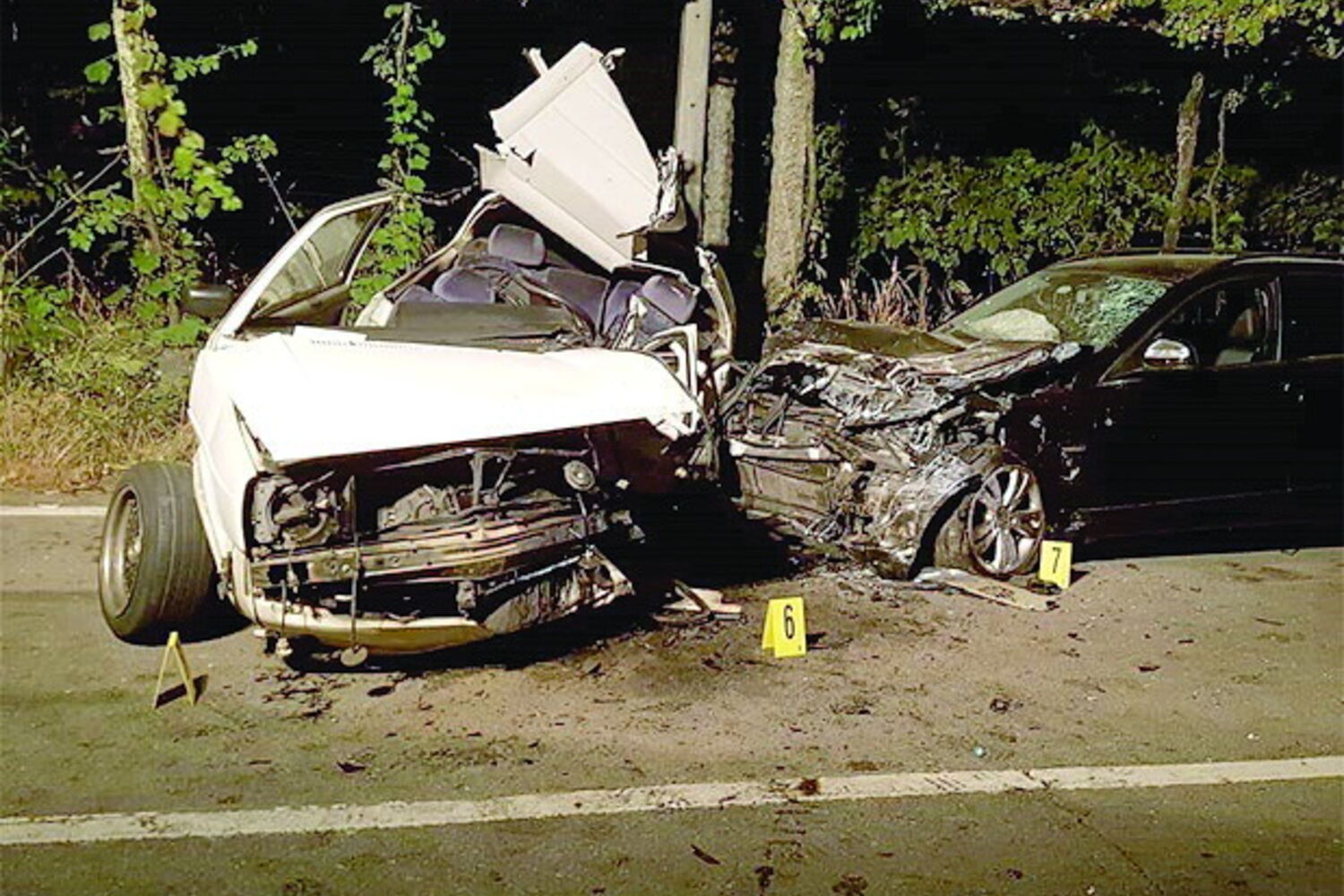 O acidente ocorreu numa longa reta. O Audi de matrícula alemã iria a alta velocidade e ultrapassou uma moto numa lomba onde a sinalização proíbe essa manobra devido à má visibilidade.