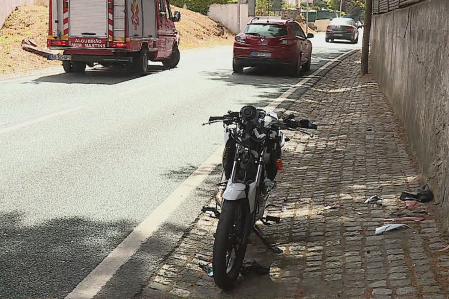 O motard foi transportado ao hospital Amadora-Sintra para ser assistido a ferimentos ligeiros. A PSP investiga.