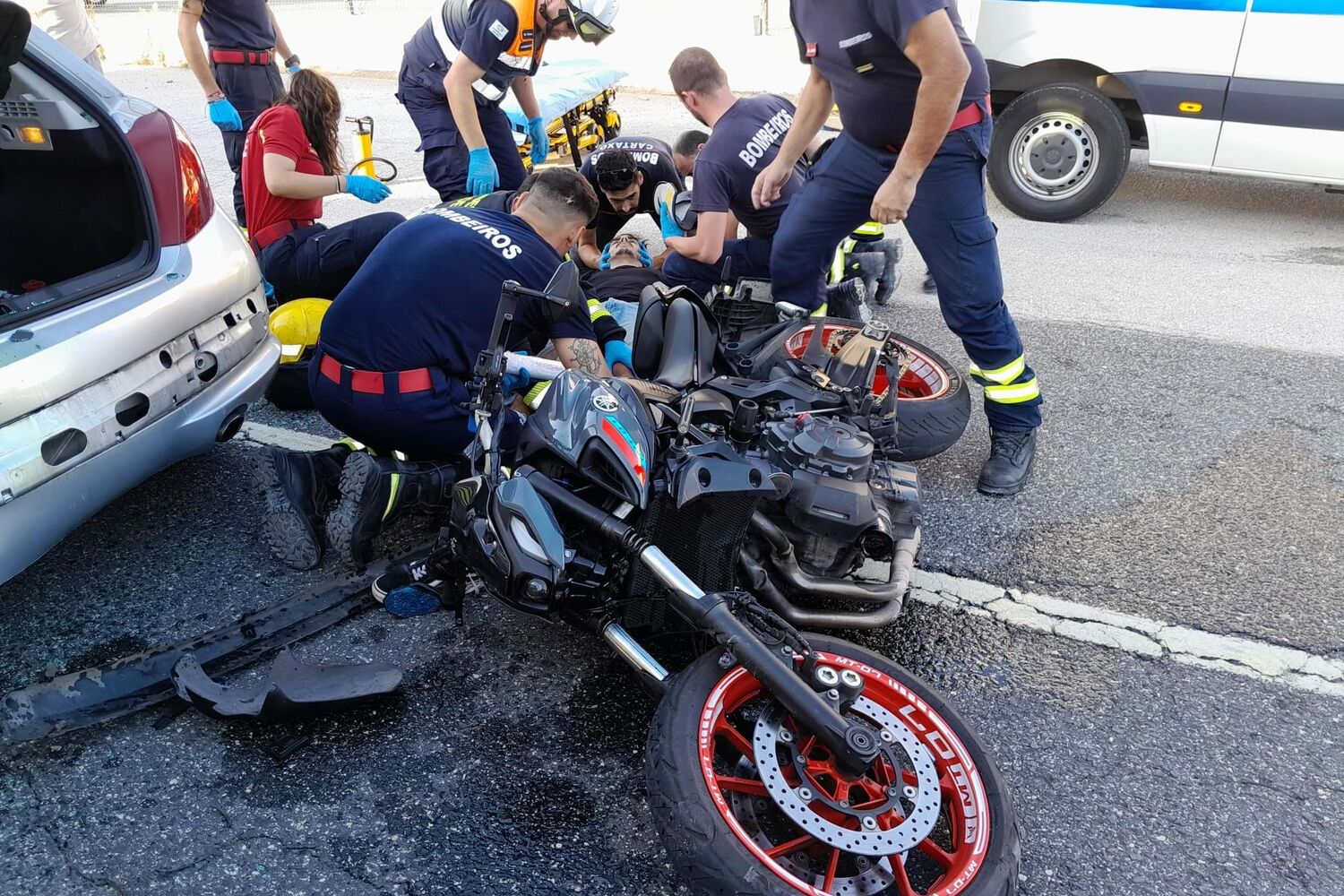 O ferido é o condutor do motociclo, que foi assistido no local e transportado para o hospital com ferimentos graves.