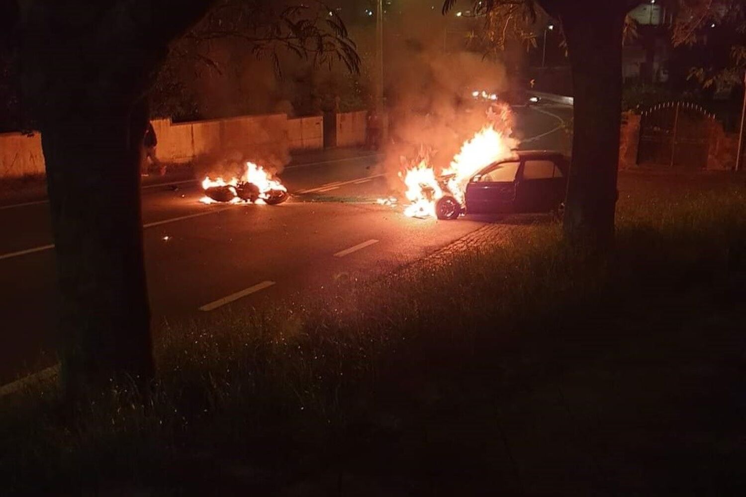Após a colisão o carro e a mota incendiaram-se. O alerta foi dado às 22h12. No local, estão os Bombeiros Tirsenses, com quatro viaturas e dez operacionais e o INEM que estão a prestar os primeiros socorros à vítima.