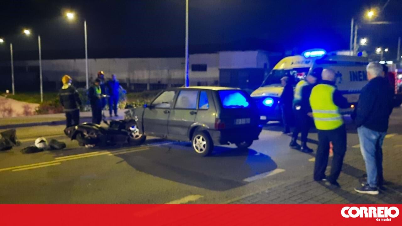 Um motociclista sofreu ferimentos ligeiros, este final de tarde de segunda-feira, na sequência da colisão entre a mota em que seguia e um carro, na Feira.