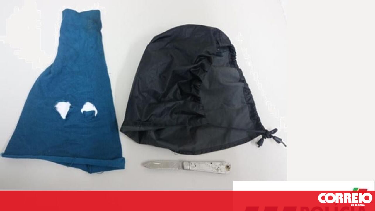 Na sequência da detenção as autoridades apreenderam uma navalha, bem como um capuz e uma manga de camisola, com dois buracos, que servia de máscara.