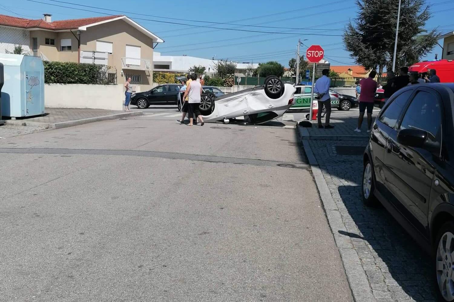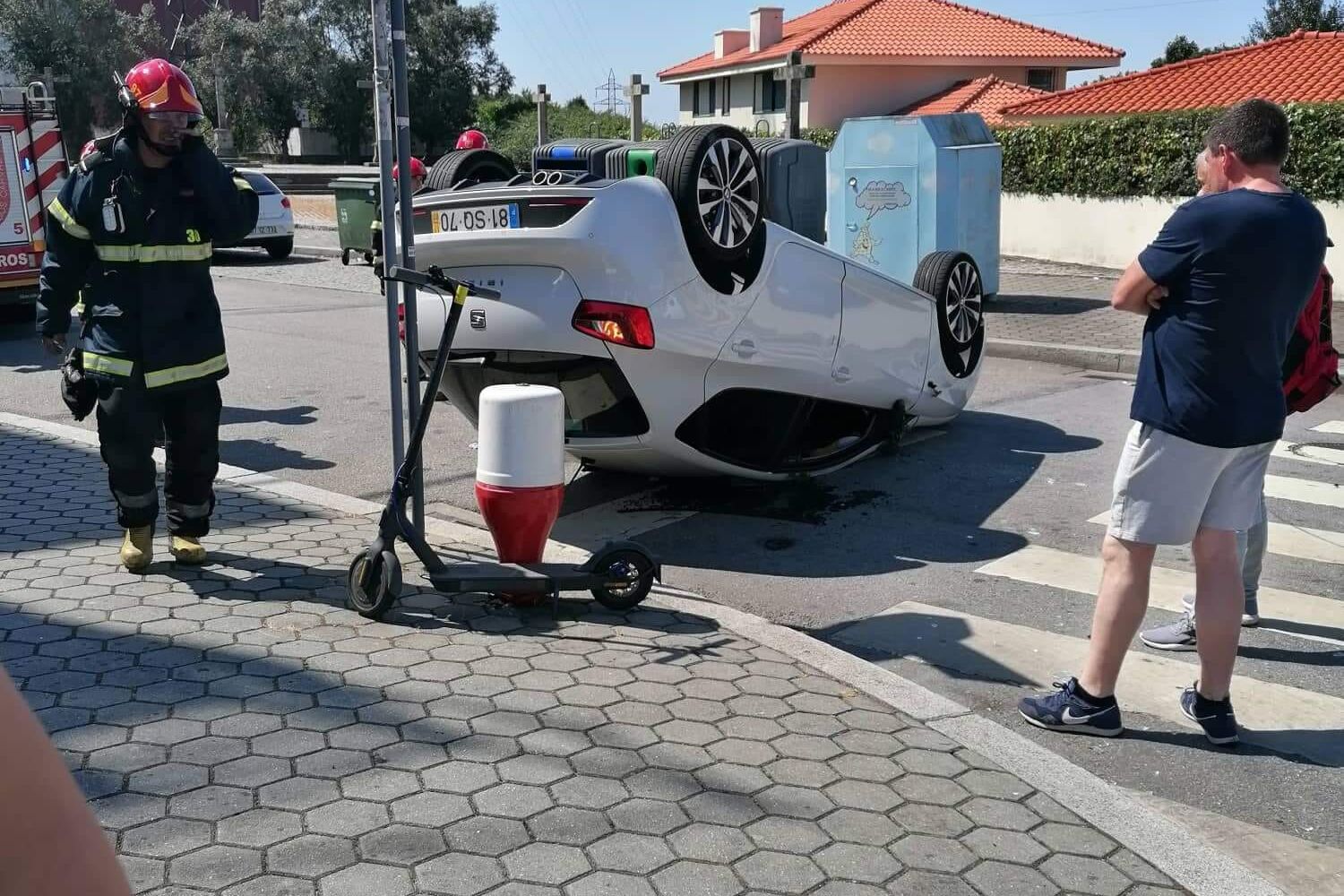 Uma mulher, com cerca de 60 anos, sofreu ferimentos ligeiros, esta manhã de sexta-feira, numa violenta colisão entre dois carros, seguido de capotamento, em Gaia.